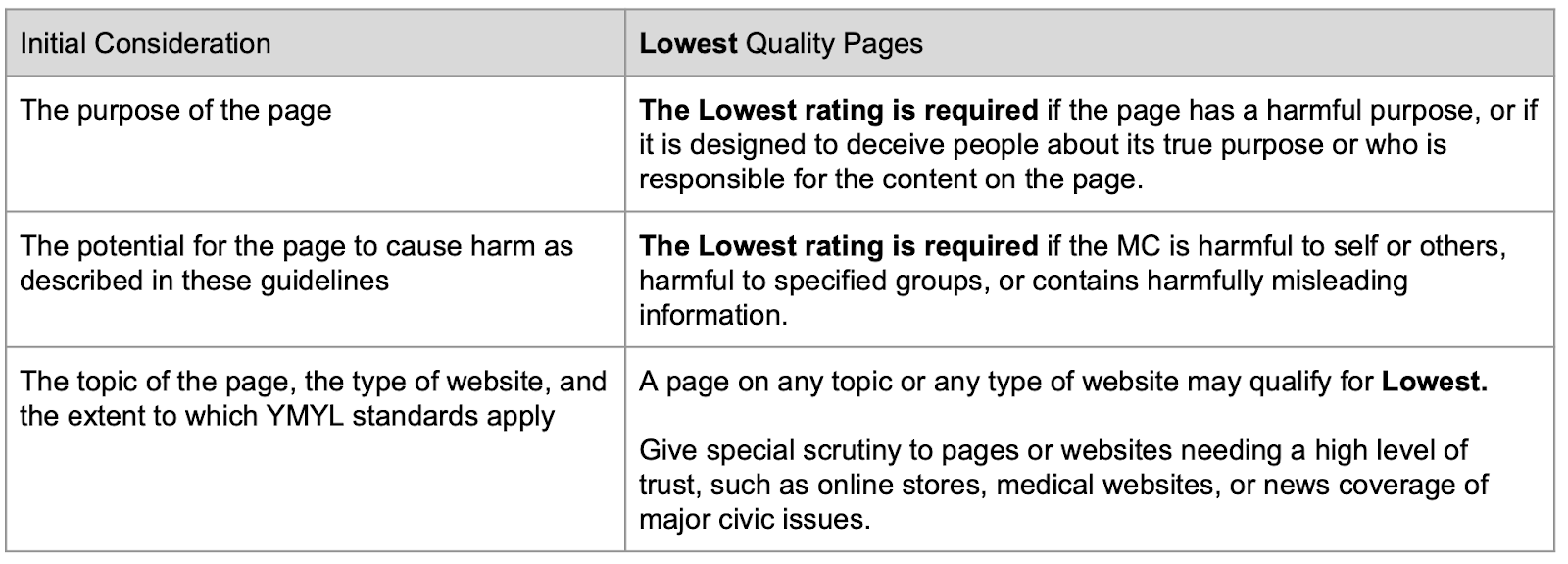 Google’s guidelines have details about how they evaluate the reputation of websites and content creators, including what it means for content to be considered as “harmful.”