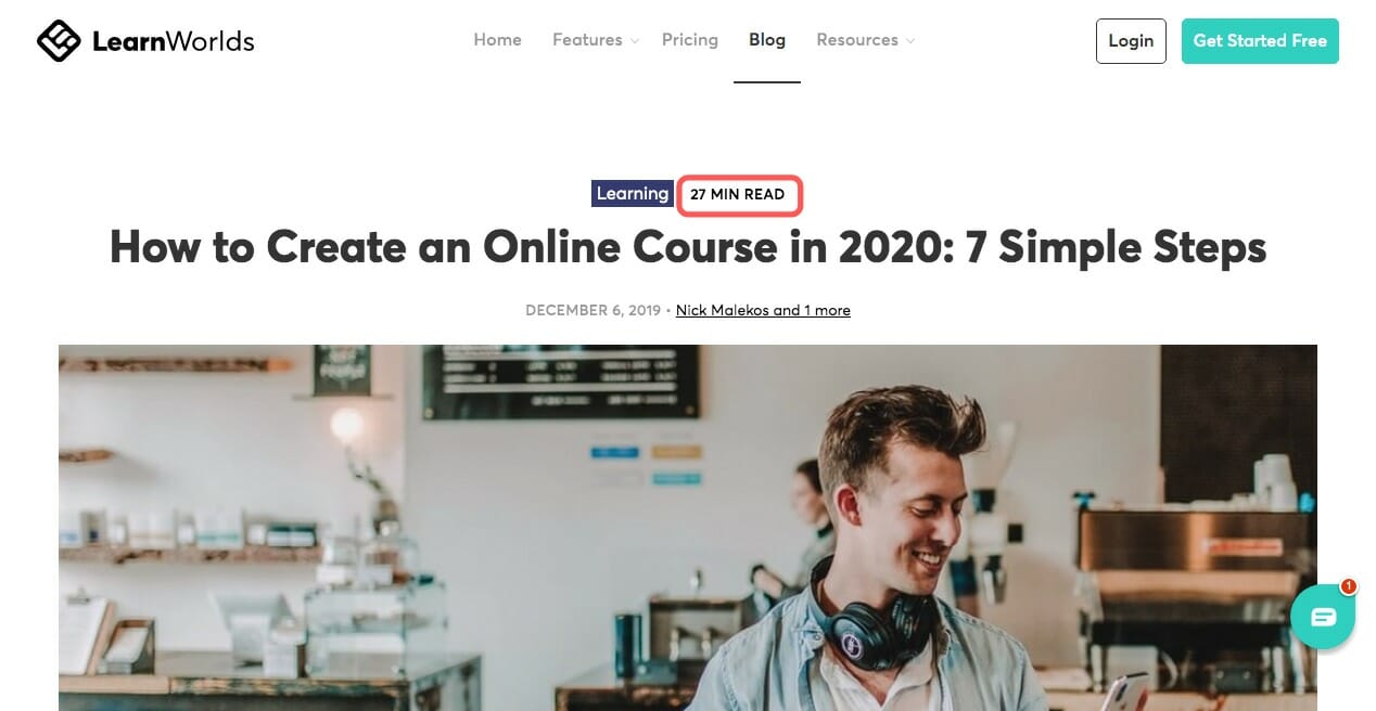 Let’s click on the how to create an online course content piece by LearnWorlds: