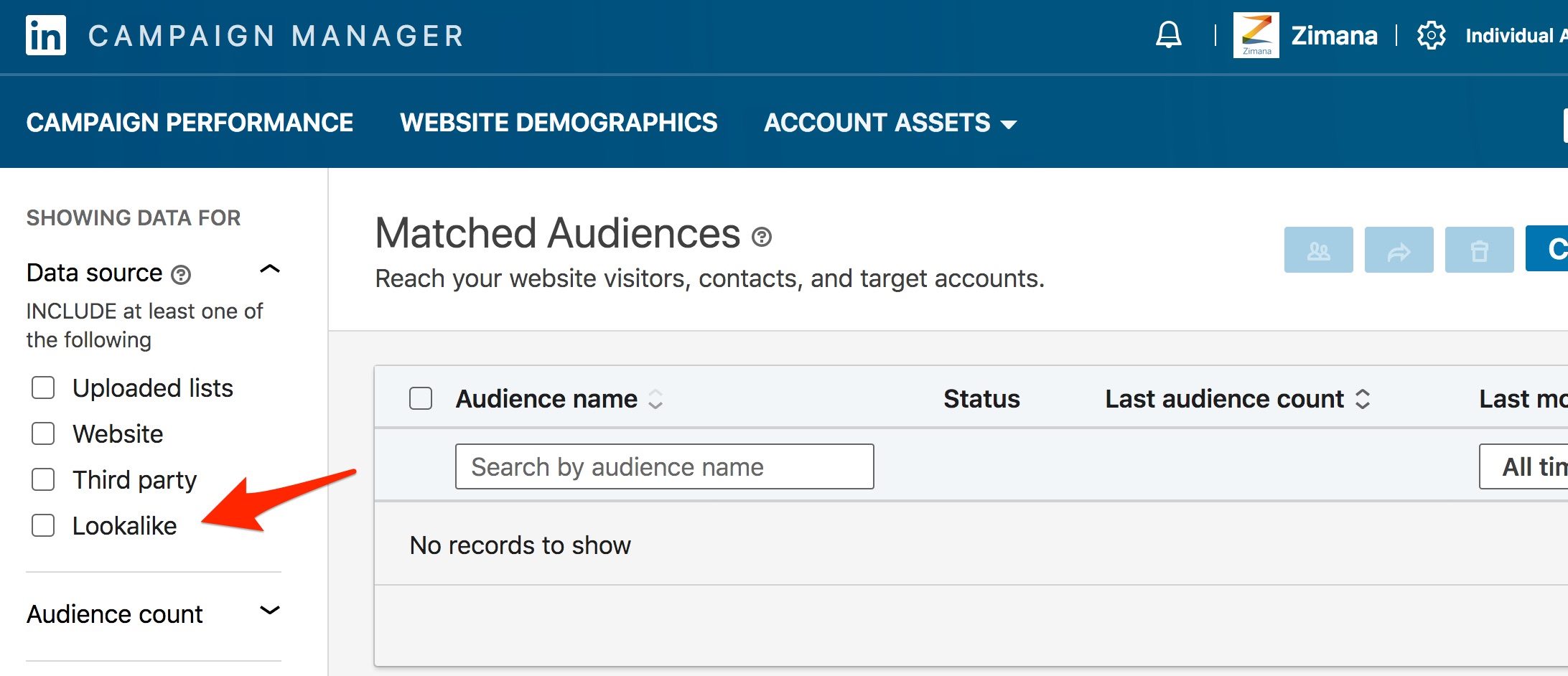 - In LinkedIn Campaign Manager, navigate to the “Audiences” tab.
