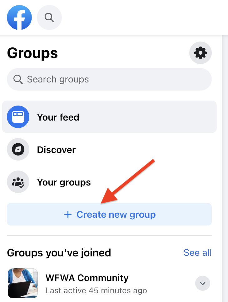 - From your News Feed, click Groups in the left menu and select your new Group.