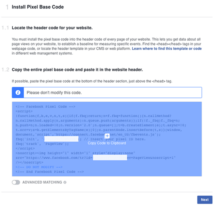 Step 4 – Now you are ready to install the pixel page. Remember to use the given base code: