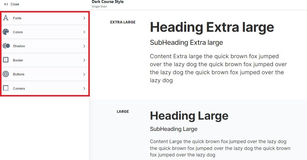 After opening the style editor (referred to as a Style Guide), you can edit all of the following: