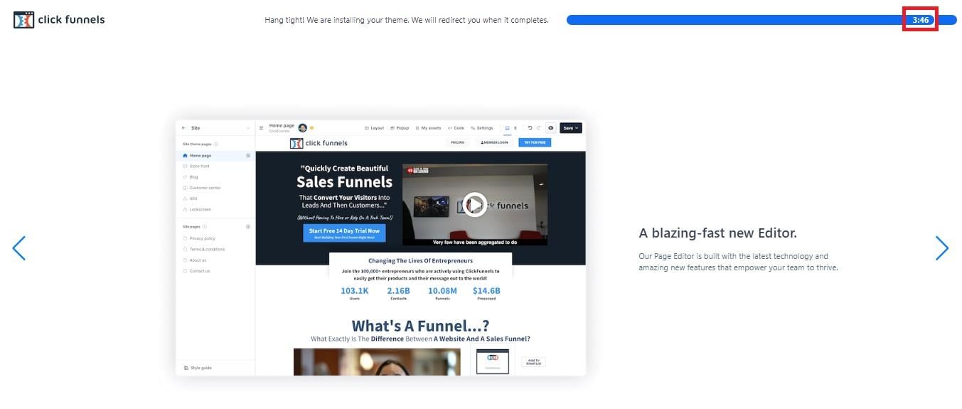 ❌ For some reason, ClickFunnels takes an inexplicably long time to install your theme: