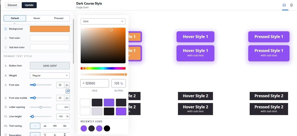 Open up the buttons option, for example, and you can configure every last detail from background and text color to font styling, size, shape, and everything in between.