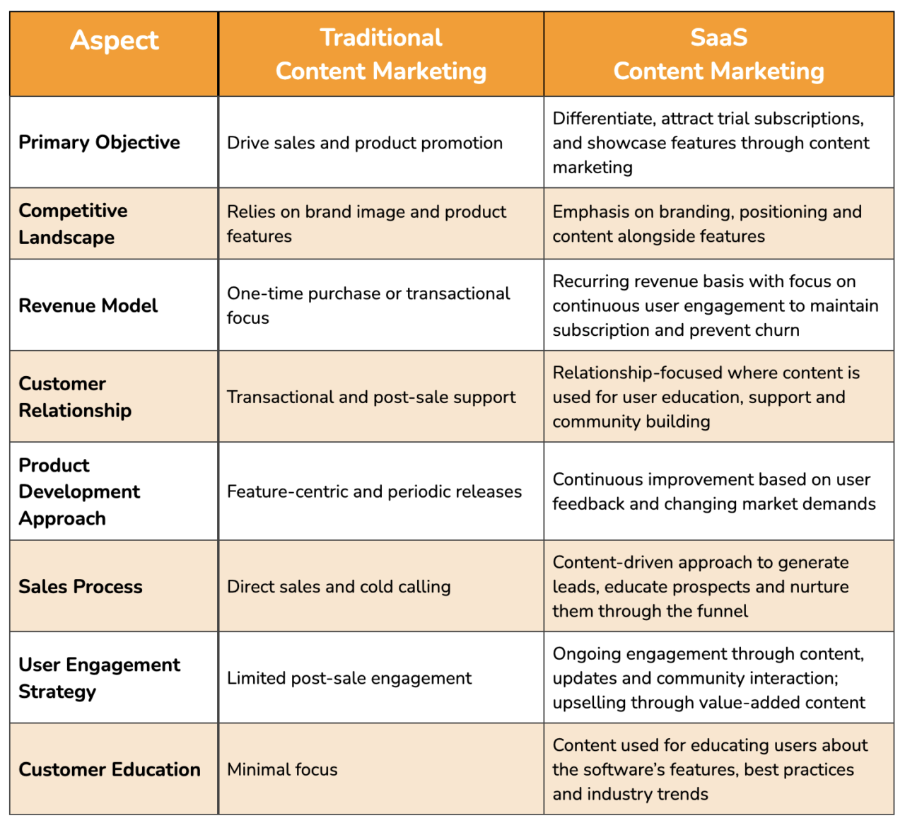 - Differences Between Traditional Content Marketing and SaaS Content Marketing