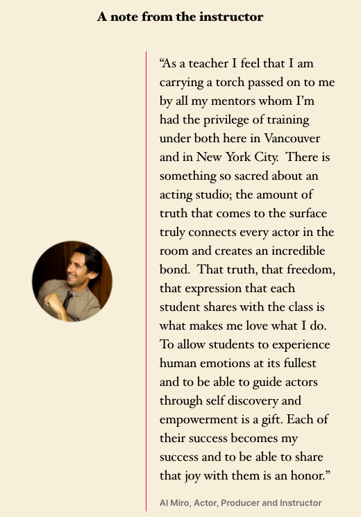 But I was uniquely positioned to write this “best of” article authoritatively because I am an actor and I’ve taken tons of acting classes around Vancouver, BC, where I live. Plus, I know lots of other actors and acting instructors who were interested in sharing their thoughts.